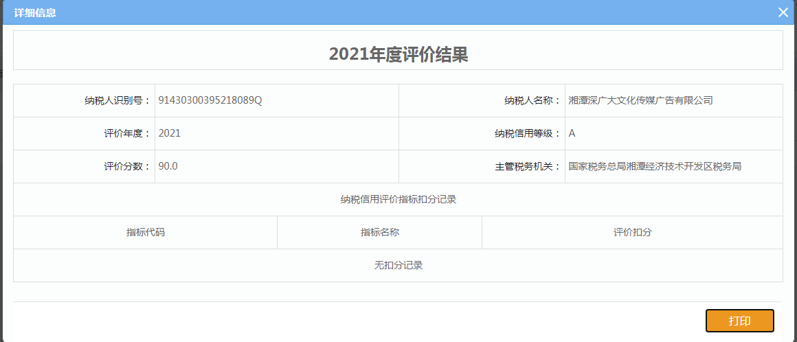 企業(yè)納稅信用等級報告:
