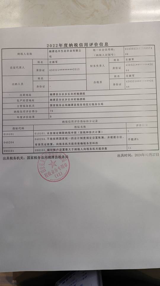 企業(yè)納稅信用等級報告: